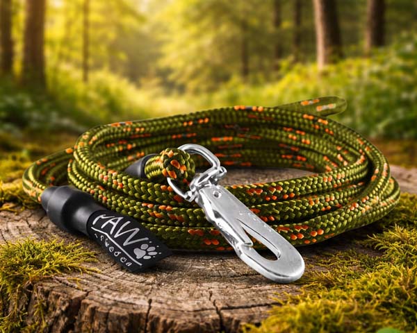 PAW of Sweden’s lead with snap hook Hunter Olive is made from our soft and flexible rope that feels comfortable in the hand and does not cause friction.
