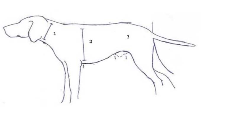 | Size | Neck (1) | Chest (2) | Waist (3) |